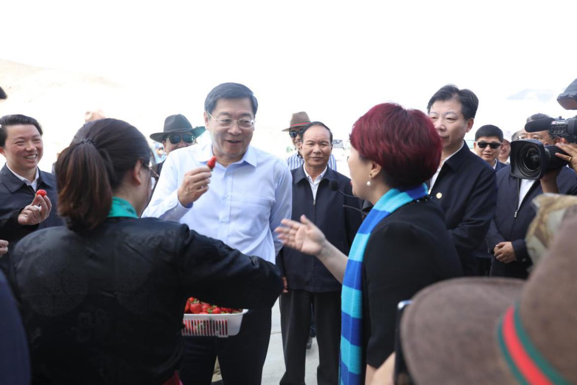 考察結束之際,湖南省杜家毫省委書記對我們企業能扎根西藏投資,積極參與科技援藏所取得的初步成效,給予充分肯定,對工廠先進的生產技術,特別是發酵技術全過程無臭味,不污染環境,表示非常的認可!西藏自治區吳英杰書記,對我們投資扎根西藏,表示由衷的感謝和高度的贊賞!希望我們發揮科技企業的優勢,不僅生產出好的生物基質,生物肥料,還要研究并生產適合高原地區的微生物菌劑,為西藏這塊凈土再生活力,為西藏的社會經濟發展做出更大的貢獻。并表示西藏自治區各級政府將一如既往地支持企業!