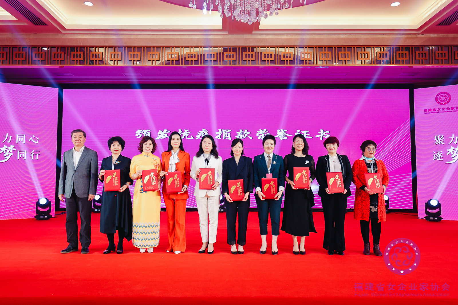 現場,夏江平董事長還獲得福建省女企業家協會頒發的抗疫捐款榮譽證書,在疫情期間積極捐款捐物的愛心善舉再獲肯定!