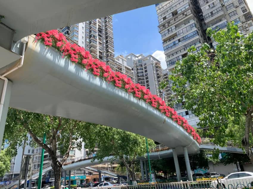 作為廈門市市花,三角梅可謂在廈門隨處可見,點綴著鷺島的大街小巷,象征著熱情、堅韌不拔、頑強奮進的精神。三角梅花色艷麗、豐富,具有葉綠、花期長久的特點;且三角梅有很強的吸塵、吸毒功能,可用于凈化空氣,綠化美化環境,是一個很好的盆栽花卉,也應用于風景園林栽作花籬、門廊、盆景等。