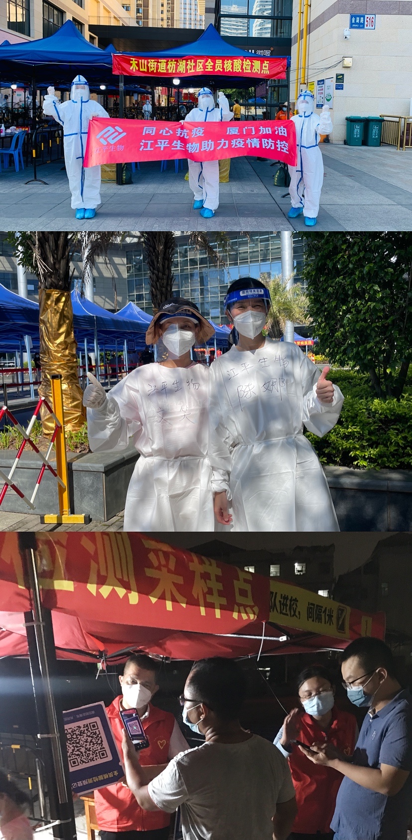 由充滿熱情的夏江平董事長帶領的江平生物團隊,是一支充滿熱血的隊伍!近期,在廈門抗疫的關鍵時刻,江平生物抗疫志愿隊共7次助力多個社區疫情防控工作,深入到各個核酸檢測點一線協助現場各項志愿服務工作,不怕苦不怕累不怕危險,充分彰顯江平生物抗疫志愿者風采!
