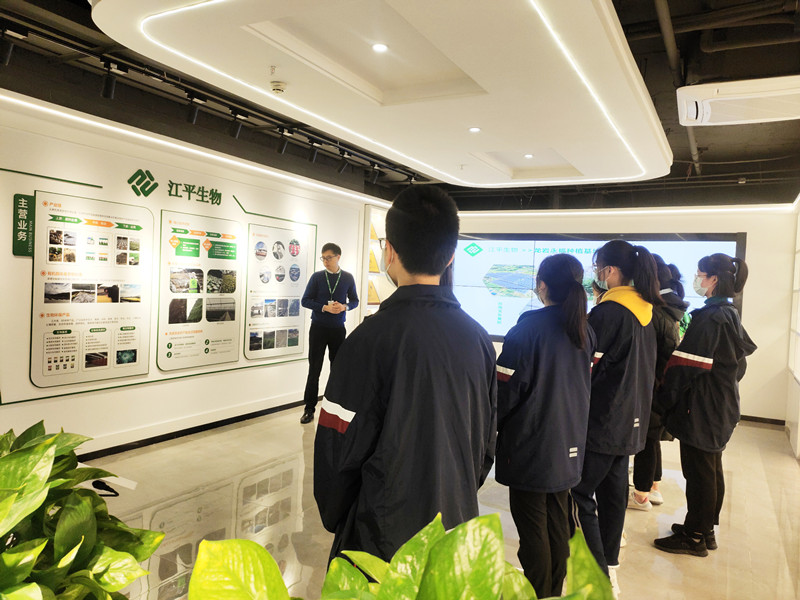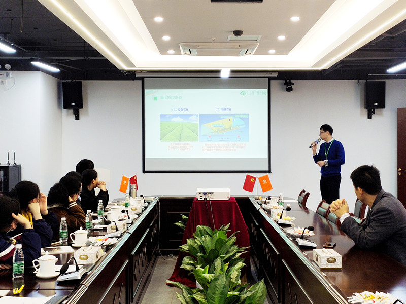 隨后,總裁助理陳嵩在會議室為同學們介紹了現代生態農業的發展、江平生物在現代生態農業發展中發揮的作用等,使綠色發展理念在同學們的理解中更具象化。
