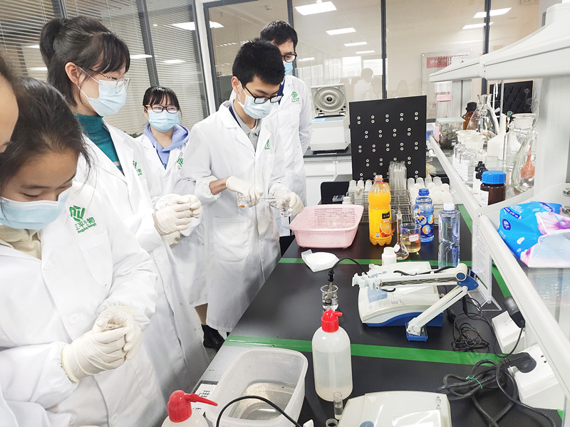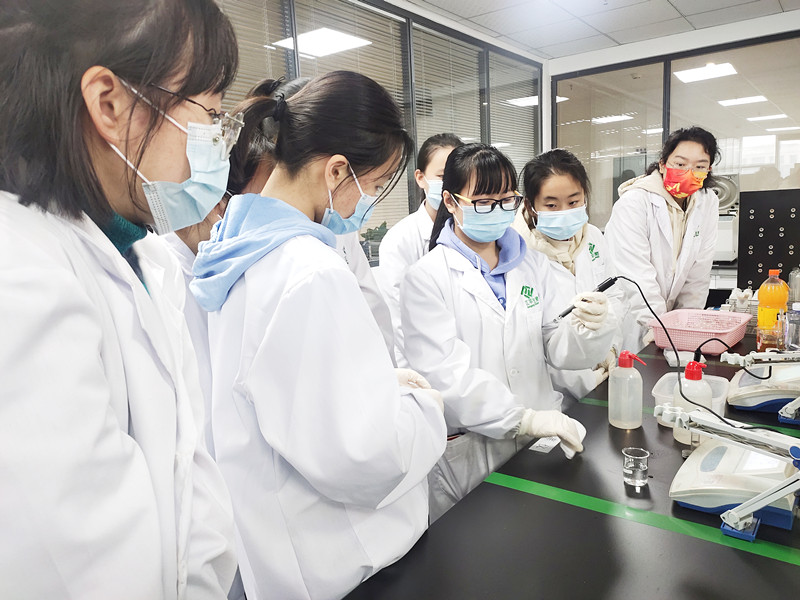 在實驗室內,總裁助理陳嵩、實驗室副主任陳源富與檢測工程師林清華帶領同學們感受了理論與實踐的碰撞。除了解實驗室里各式各樣的儀器之外,大家還參與了互動小實驗,對各種溶液的電導率和PH值進行測試。所謂知之者不如行之者,相信此次的小實驗會給同學們留下深刻的印象。